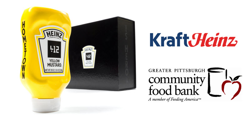 La edición limitada de la botella Heinz Yellow Mustard será para ayudar a recaudar fondos a Greater Pittsburgh Banco de Alimentos. La botella 412xHeinz Yellow Mustard estará disponible a partir del Sábado 19 de Septiembre en Shop412. Todas las ganancias de las ventas de la botella beneficiarán al Banco de Alimentos, que tiene el objetivo de recaudar fondos suficientes para pagar un millón de comidas en el Suroeste de Pennsylvania.