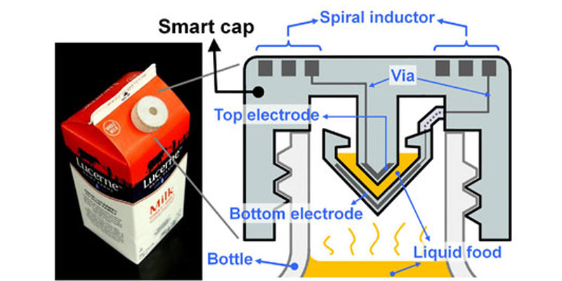 Para responder a esto, los investigadores integraron los componentes electrónicos en una tapa de cartón de leche de plástico para monitorear signos de deterioro. El "cap inteligente" fue equipado con un condensador y un inductor para formar un circuito resonante. El circuito puede detectar los cambios en las señales eléctricas que acompañan aumento de los niveles de bacterias. Los investigadores monitorearon periódicamente los cambios con una sonda de radiofrecuencia inalámbrica al inicio del experimento y cada 12 horas a partir de entonces, hasta 36 horas. La propiedad de la leche cambia gradualmente a medida que se degrada, lo que lleva a las variaciones en sus características eléctricas.