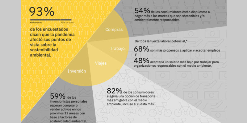Estudio de IBM: Pandemia de COVID-19 impactó las opiniones sobre sostenibilidad de 9 de cada 10 consumidores. Investigación global revela que la mayoría de los consumidores están dispuestos a pagar para apoyar un futuro sostenible. La pandemia de COVID-19 ha elevado el foco de los consumidores en la sostenibilidad y la disposición de pagar de sus propios bolsillos -o incluso aceptar una reducción de sueldo- por un futuro sostenible, de acuerdo con el nuevo estudio del IBM Institute for Business Value (IBV) en más de 14.000 consumidores en nueve países.