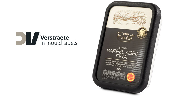 El queso feta griego tradicional de Dairy Pure para COLES se destaca en la cadena de supermercados australianos. La etiqueta llamativa combina las flamantes opciones de la laca de Verstraete IML - Matt IML y UltraGloss IML - con metálico IML "El resultado es una apariencia de alta calidad y lujoso es ideal para productos de primera calidad que merecen un lugar especial en las estanterías de las tiendas" .