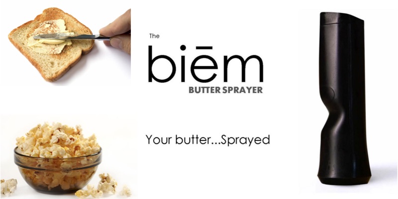 "Usar BIEM contribuye a mejorar el uso de la mantequilla, lo hace mucho más versátil, especialmente en términos de facilidad de uso y control de las porciones" dice Doug Foreman, el creador. "Mientras que hay otros productos en el mercado, los aerosoles de mantequilla, pero ninguno de ellos utilizan mantequilla de verdad. Todos ellos están utilizando aceite artificial o su sabor, que por lo general contienen otros ingredientes artificiales. Hasta ahora, no existía un producto que podía utilizar la mantequilla sólida real y convertirlo en un aerosol de mano en cuestión de segundos.”