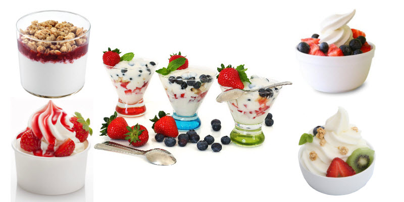 Al yogur se le agregan en la industria frutas, sabores, aromas y otros elementos permitidos. Existen variedades con sacarosa, glucosa y edulcorantes artificiales. También se lo combina con cereales como copos de maíz, de arroz, o trigo, con salvado de trigo o avena, con frutas secas o desecadas como almendras, nueces, pasas de uva, coco rallado, manzana deshidratada, entre otros.