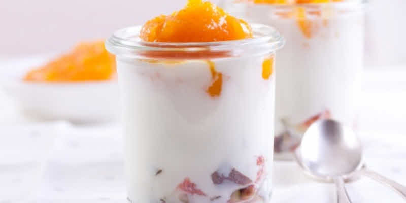 Yogur de leche descremada de cabra frutado con mango y plátano